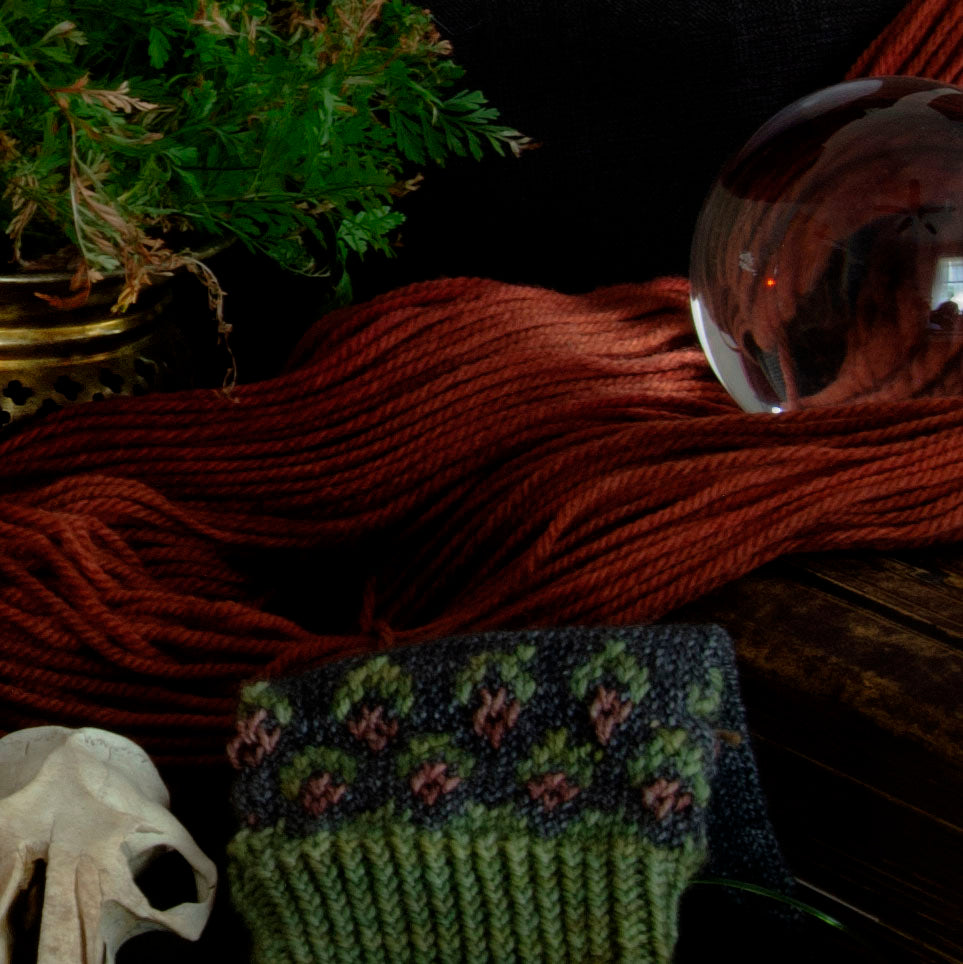 Plies and Hellhounds Yarn is a one-woman team, creating hand dyed yarns on a curated collection of bases with a wide variety of fiber content. I am here to bring you a wide range of fantastical, dark, and romantic colors to help you build the handmade wardrobe of your dreams.